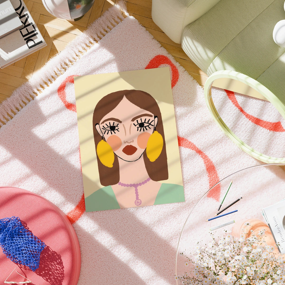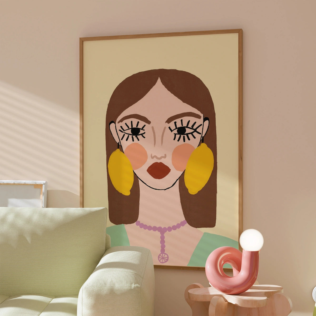 Stampa di orecchini al limone – Ritratto femminile audace da parete