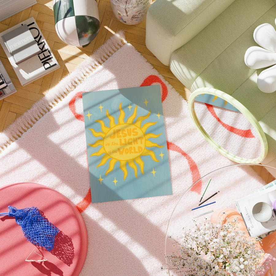 Gesù è la luce del mondo, stampa artistica da parete con illustrazione del sole cristiano