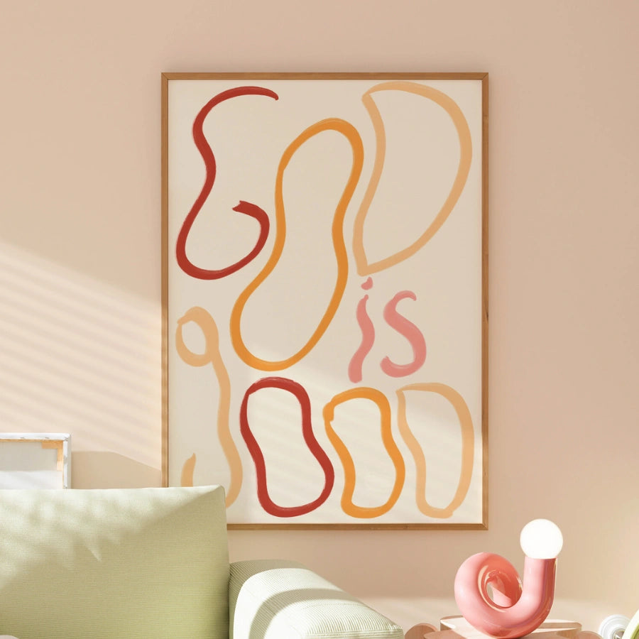 Dio è buono, arte murale cristiana – Stampa con citazione astratta della Bibbia