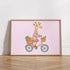 Stampa per cameretta con giraffa in bicicletta: simpatica decorazione murale per bambine