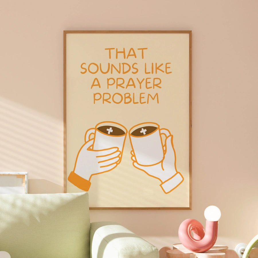 Stampa murale sul problema della preghiera – Divertente stampa cristiana sul caffè
