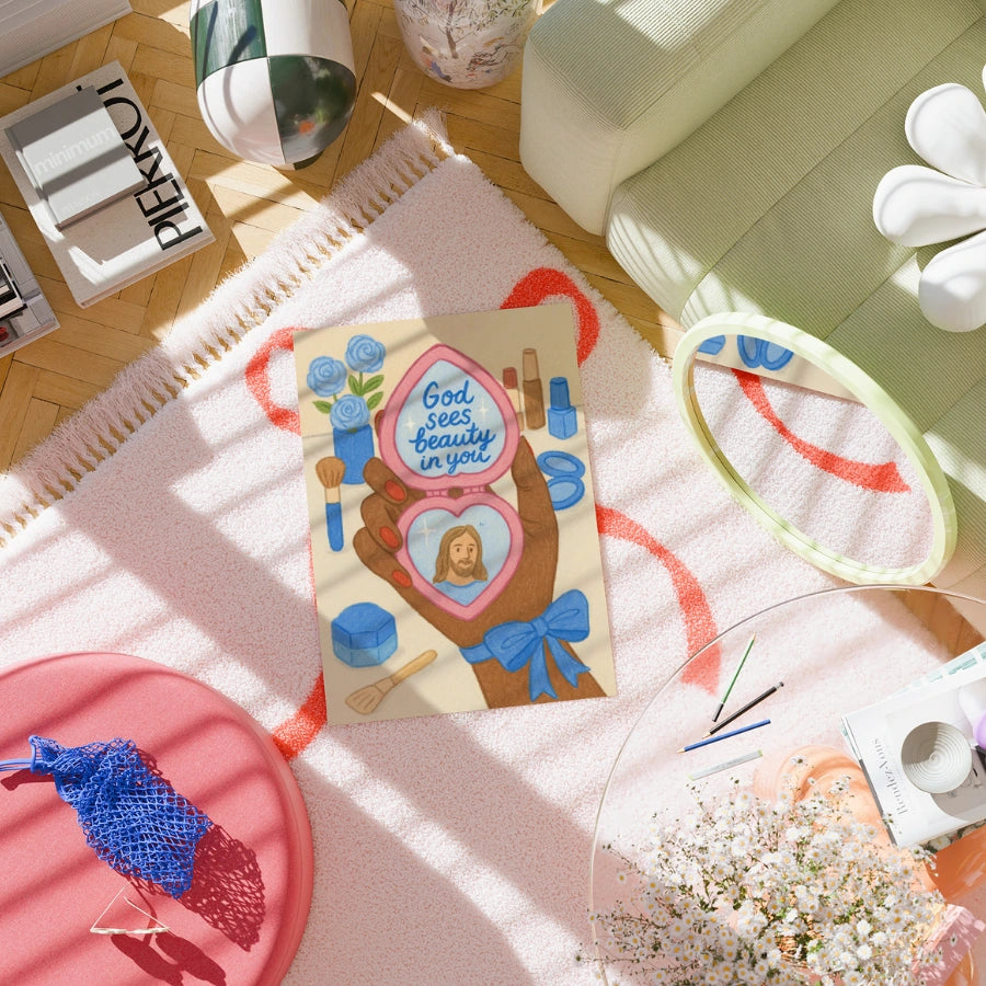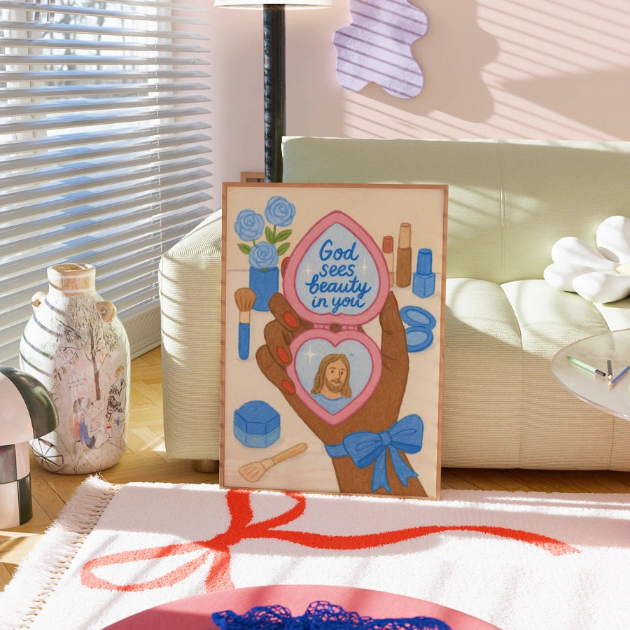 Dio vede la bellezza in te - Stampa murale con affermazione cristiana