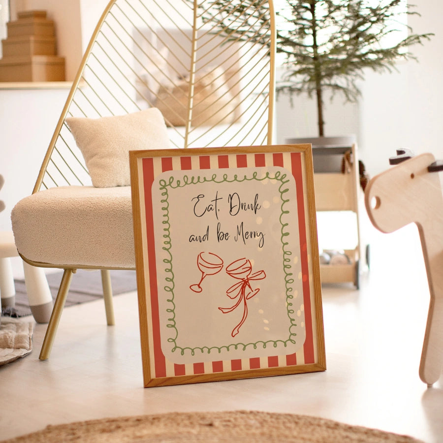 Mangia, bevi, sii allegro – Stampa artistica da parete per la festa di Natale
