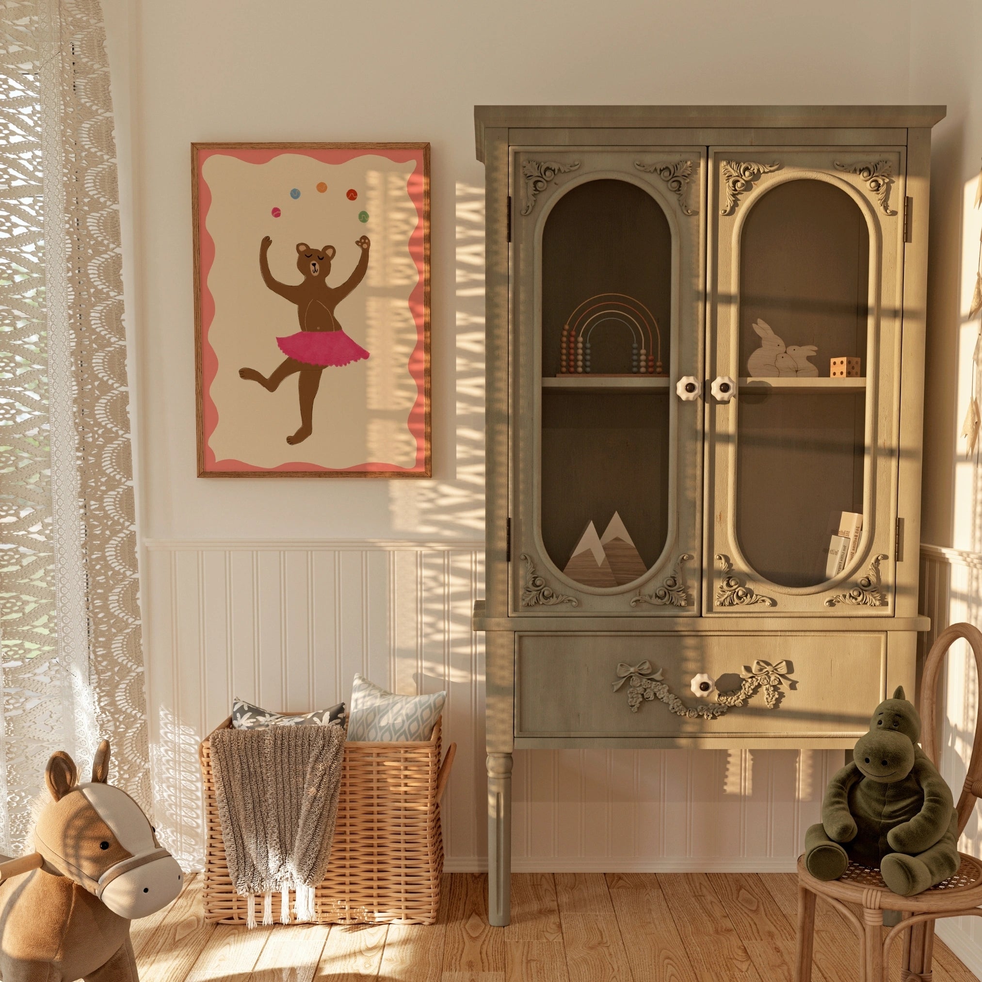 Decorazione murale con orso danzante - Stampa per cameretta con ballerina rosa