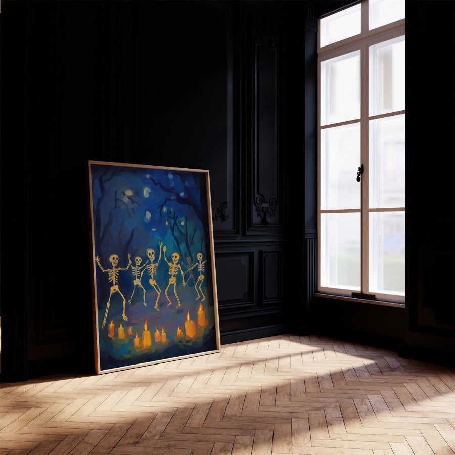 Stampa di Halloween con scheletri danzanti – Arte murale della foresta spettrale