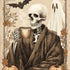 Stampa di Halloween con scheletro di caffè – Arte murale spettrale vintage