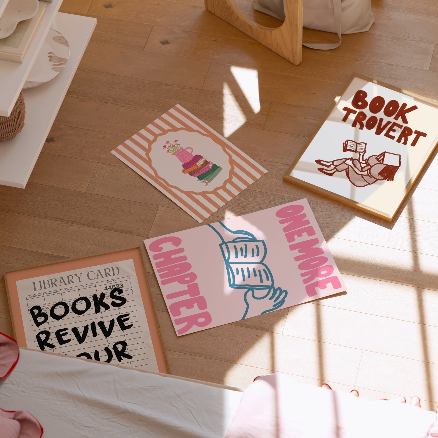 Ogni design è ispirato alla letteratura classica, alle tessere della biblioteca e ai momenti di tranquillità trascorsi con un buon libro. Create su iPad e stampate su materiali di alta qualità, queste opere d'arte combinano calore, nostalgia e un design senza tempo per creare un'atmosfera calma e stimolante.