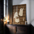 Realizzato su tela di cotone misto poliestere da 300 a 350 g/m² con una sottile cornice in legno da 2 cm. Leggero, resistente e pronto da appendere senza bisogno di cornici aggiuntive.