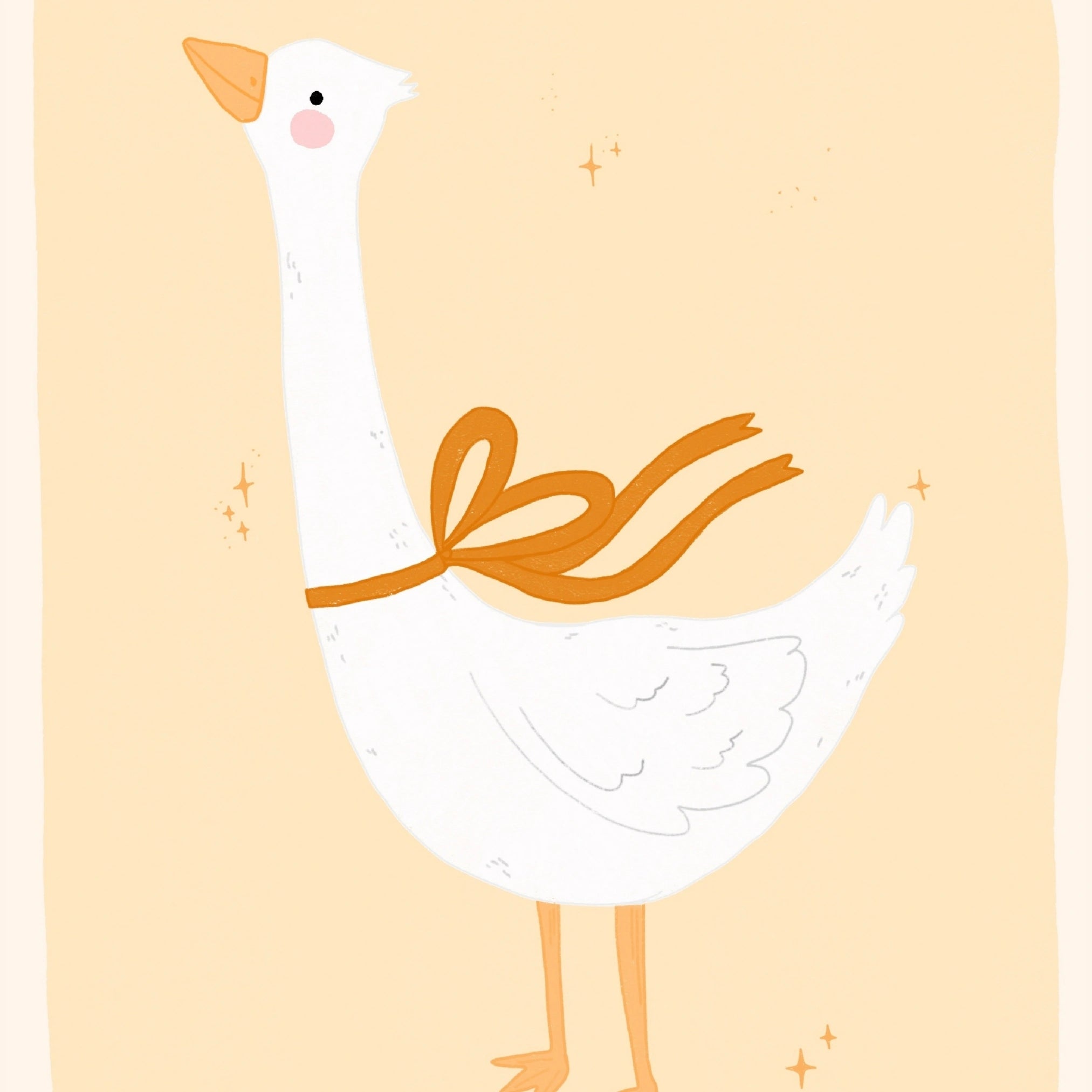 Decorazione murale a forma di oca con fiocco arancione - Stampa animale stravagante per la cameretta dei bambini